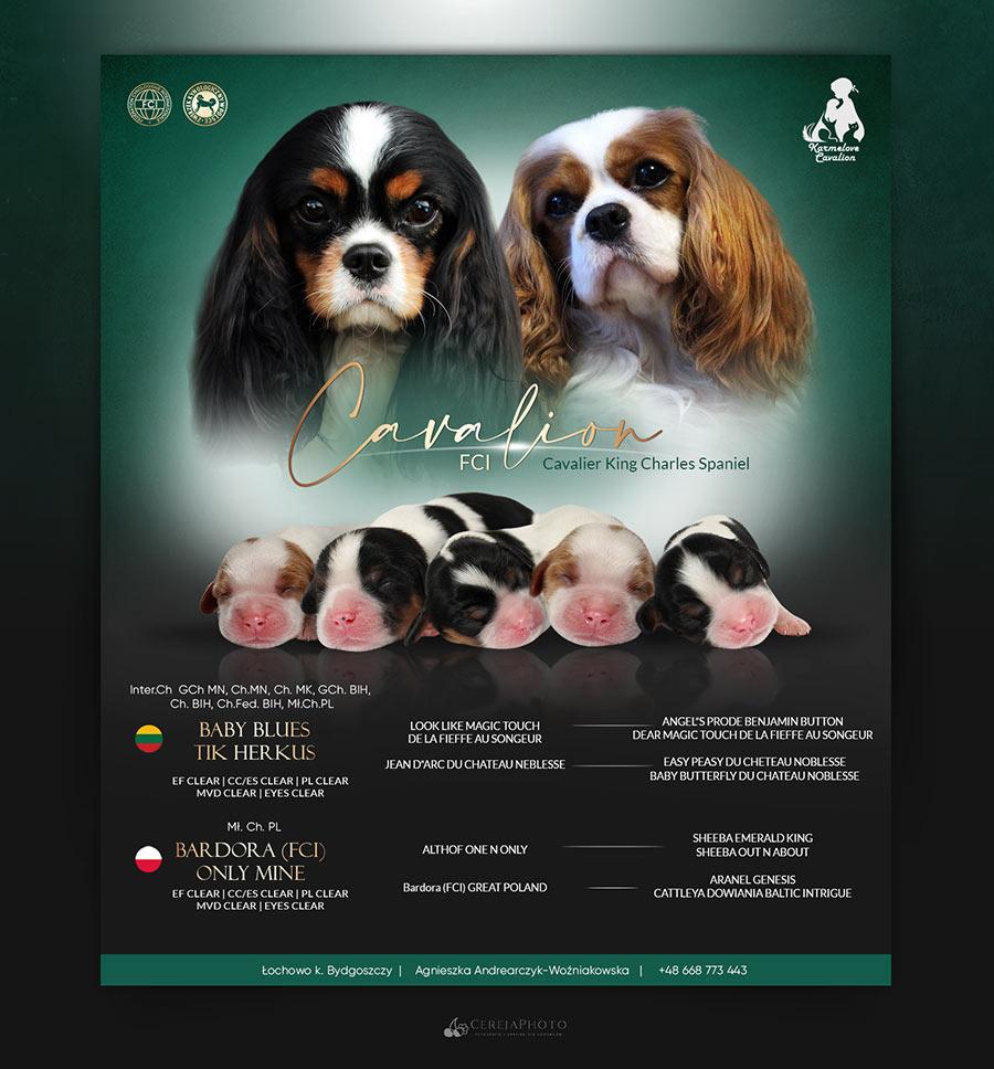 Urodzony 24.04.2022. Dostępni 2 chłopcy (blenheim i tricolor) i 3 dziewczynki (2 blenheim i 1 tricolor)